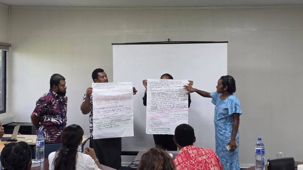 The Fiji Council of Social Services (FCOSS) held a 2-day workshop on developing an “Integrated Community Nutrition Training Package” for Civil Society Organizations (CSO’s), at the FNU’s Fiji Learning Institute for Public Service, on the 26th and 27th of March 2026. The Workshop, which was facilitated by a team from UNICEF aimed to strengthen the capacity of CSOs – to effectively integrate nutrition interventions into their existing programs for disease prevention and management. Recognizing the critical role CSOs play in community outreach and service delivery – this workshop focused on developing an “Integrated Nutrition Advocacy Package for Community Engagement”.