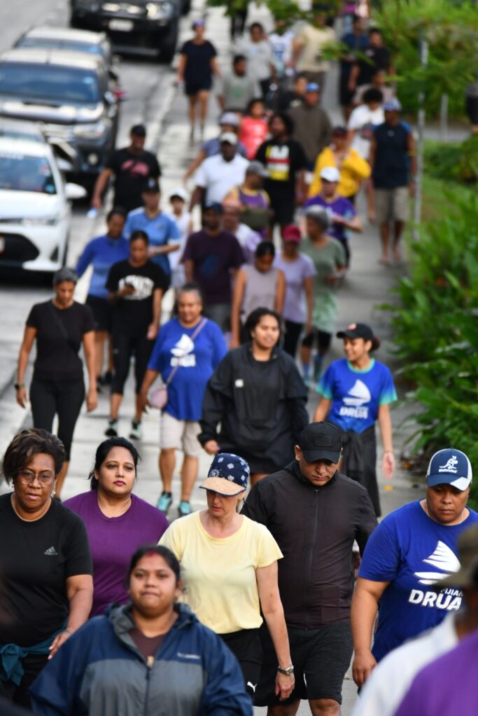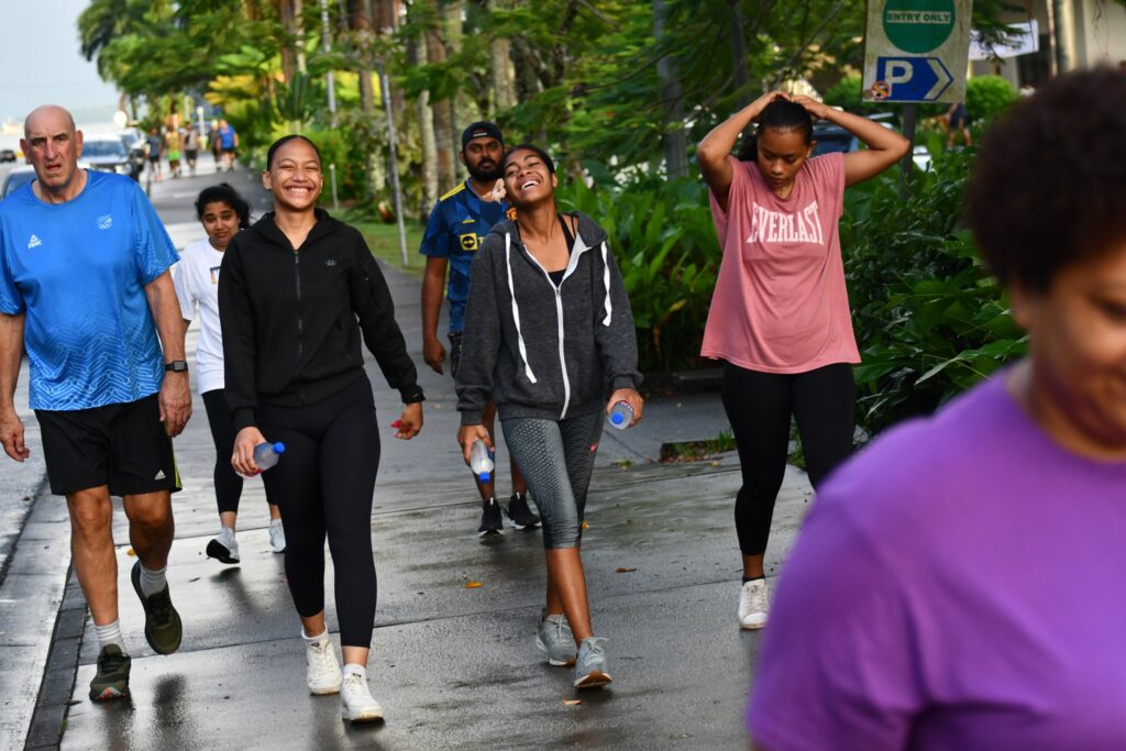 So “Walk A Mile In My Shoes” began as usual with all our warriors, partners, supporters, friends and families – gathered very early at the Albert Park Pavilion in Suva, on a slightly wet morning for our Awareness Walk. Everyone was pleasantly surprised to see that one of our very own Lupus Ambassadors, the Assistant Minister for Foreign Affairs and Deputy Speaker of the House – the Honourable Lenora Qereqeretabua, showed up at the event! After a lovely devotion from Pastor Tiko Toganivalu of Equippers Church (Fiji) – Ms. Qereqeretabua shared a few words with everyone before Mr. Paul Simpson, our Lupus Zumba Instructor, took us for a ‘warm-up’ session, before we began our walk around the perimeters of Albert Park.
