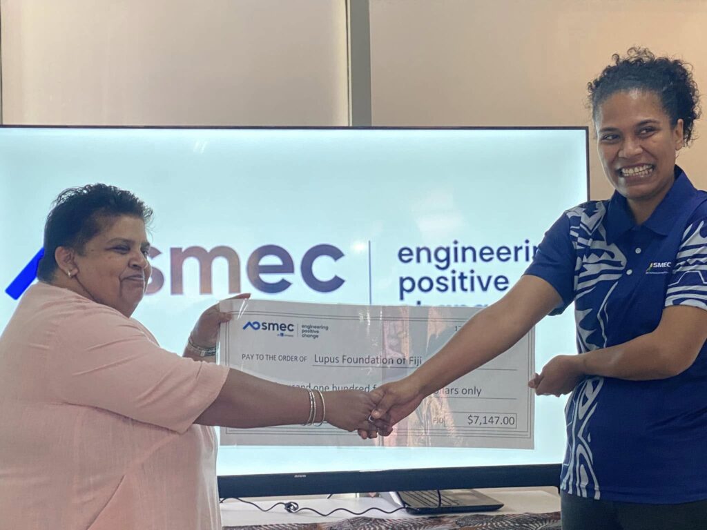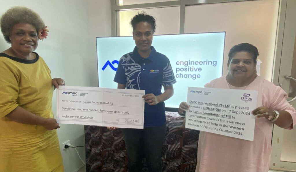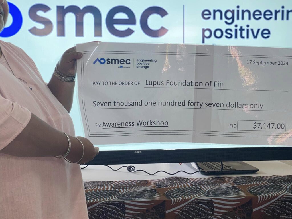 The LFF would like to thank the Executives and Staff of SMEC International Pty Ltd., for their donation towards our Awareness Campaign. Vinaka vakalevu for your kind support and very generous donation of $7,000! This will surely go a long way in “Making Lupus Visible” to the communities.